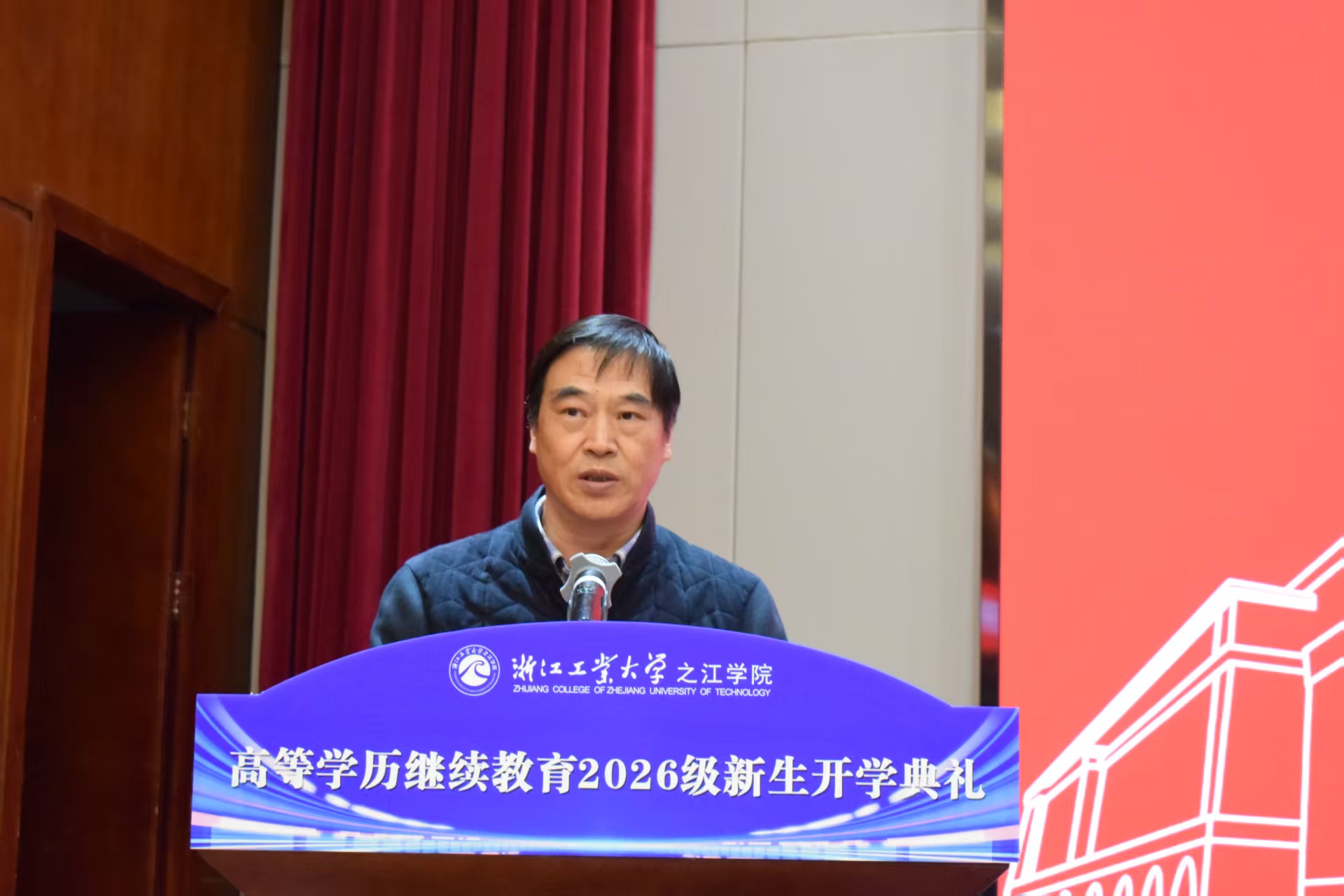 之江学院教师代表在发言中,向 2026 级继续教育新生致以诚挚欢迎。他表示,各位同学怀揣求知初心重返课堂,这份坚持与进取值得肯定。未来,全体教师将尽心尽责、倾心育人,陪伴大家深耕学业、精进自我,祝愿同学们学有所获、笃行致远,在求学之路上成就更好的自己。